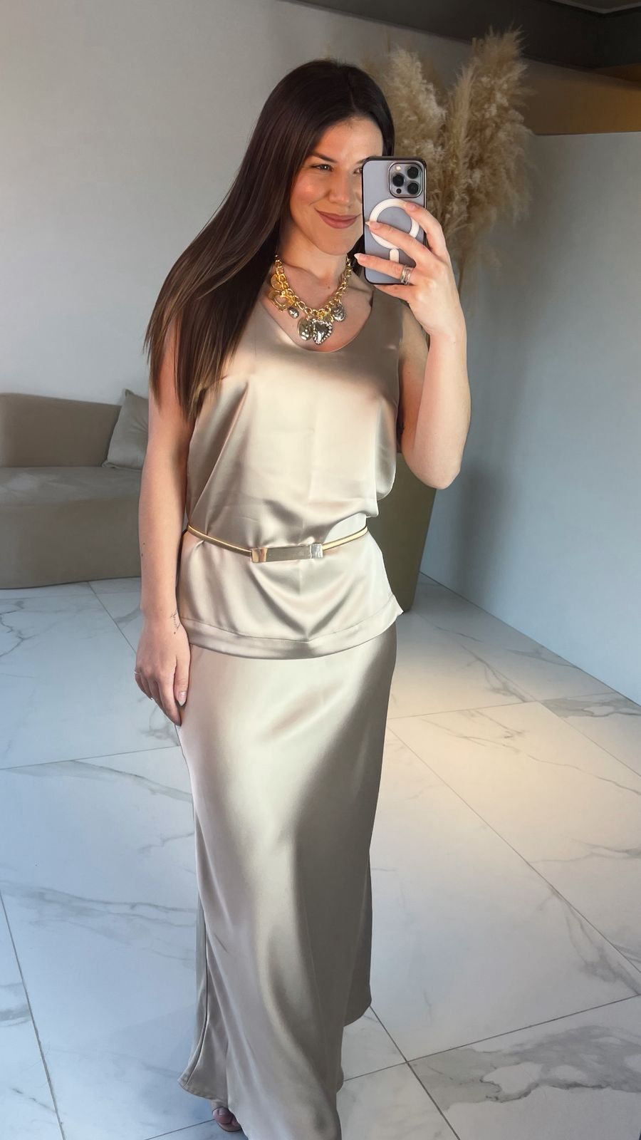 A Saia de Cetim Antonela é a combinação perfeita de elegância e suavidade. O modelo é levemente evasê e possui elástico na cintura. Feito com tecido de cetim premium, cada peça oferece um toque delicado à sua pele, proporcionando uma sensação de luxo incomparável. Com caimento impecável e tecido macio, a Saia Cetim abraça o seu corpo com conforto e estilo.