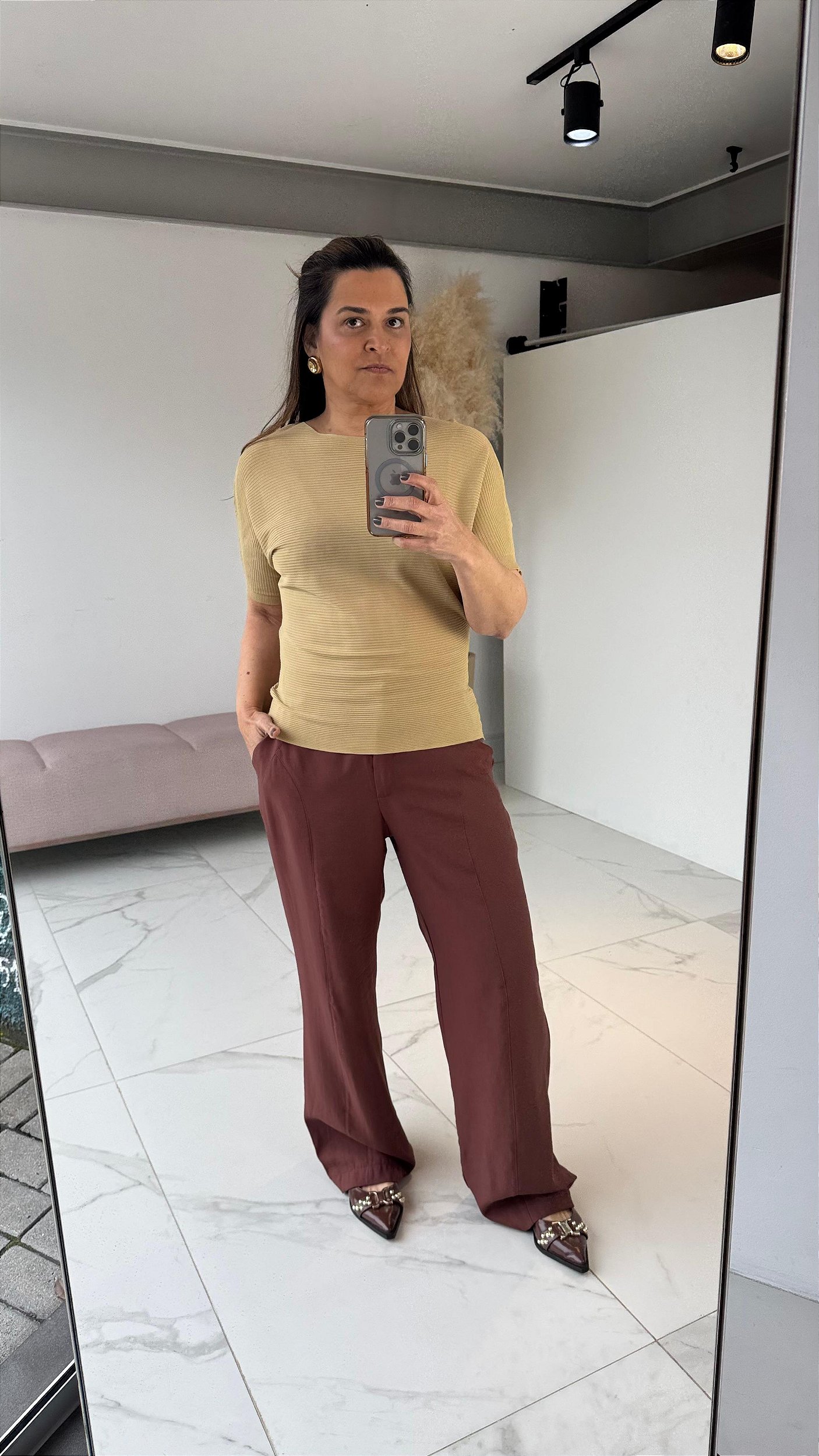 Blusa em modal leve e confortável, confeccionada em modelagem ajustada na cintura que garante caimento soltinho e elegante. O design conta com decote canoa, que valoriza os ombros, e mangas curtas com caimento moderno. A peça apresenta textura em linhas horizontais sutis, trazendo sofisticação ao visual. Versátil e atemporal, é perfeita para compor produções casuais ou sofisticadas, dependendo da combinação de acessórios e peças de apoio. Taamnho Único.