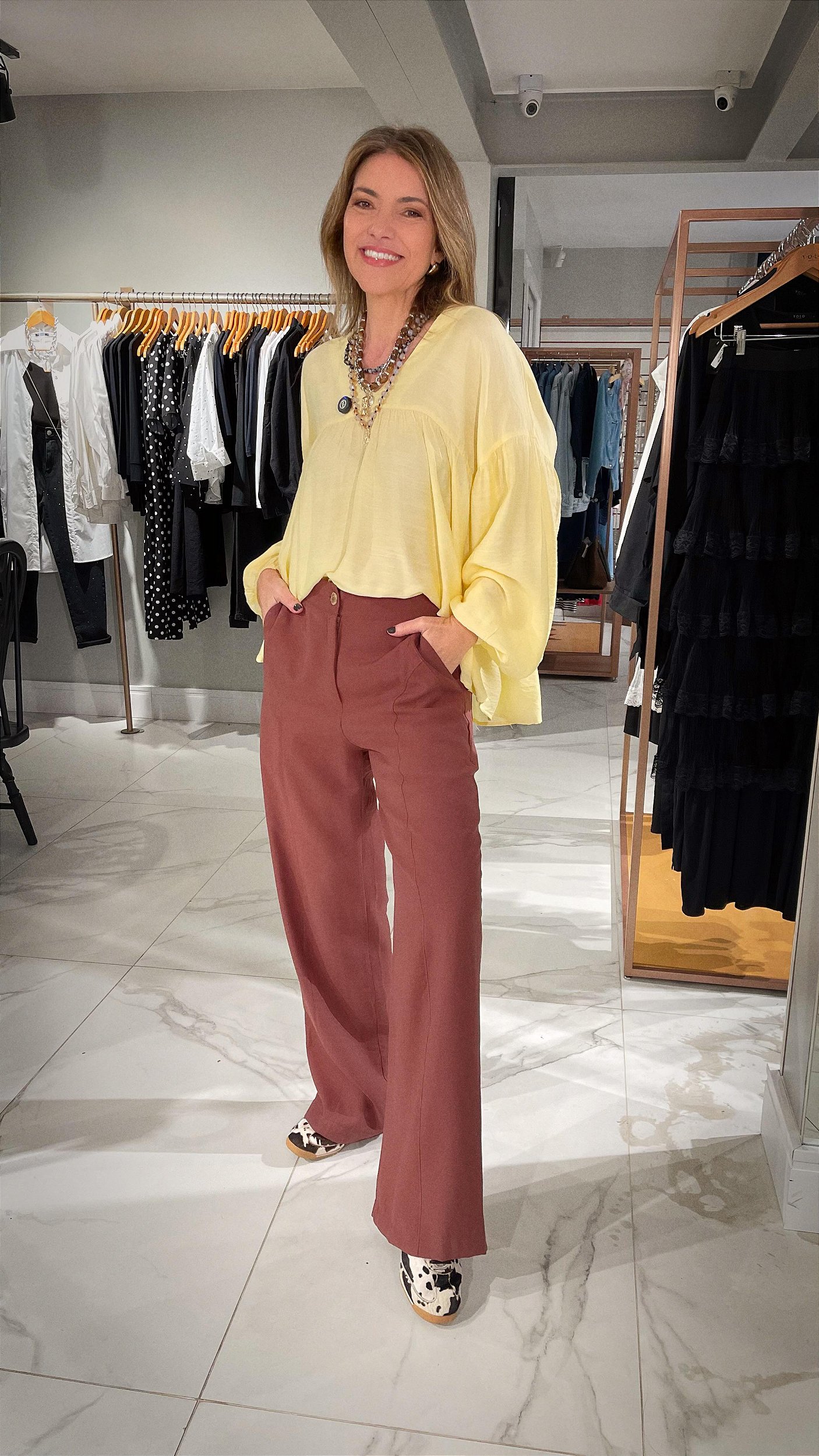 Calça reta Alfaiataria com caimento soltinho. Perfeita para muitas ocasiões.