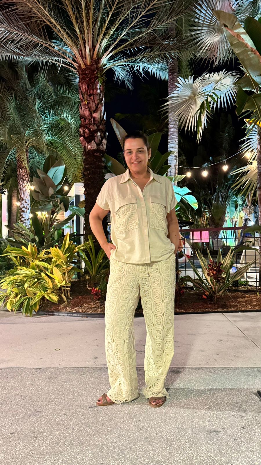 Calça feminina confeccionada em tecido leve com aplicações de crochê na parte frontal, que trazem um toque artesanal e sofisticado à peça. De modelagem reta e soltinha, oferece conforto e fluidez ao movimento, valorizando o visual de forma elegante e descontraída. O cós com elástico embutido garante ajuste perfeito ao corpo, enquanto o contraste entre o tecido liso e os detalhes em crochê cria um efeito moderno e cheio de estilo. Perfeita para compor looks casuais chic, combinando com camisas, blusas leves ou regatas em tons neutros.