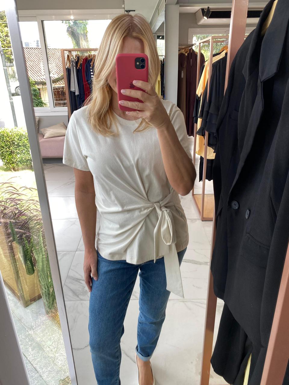 Com design moderno e detalhe de nó lateral, ela valoriza a silhueta e traz um toque de elegância até para os looks mais casuais.