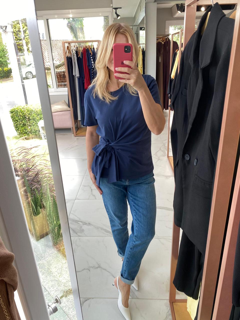 Com design moderno e detalhe de nó lateral, ela valoriza a silhueta e traz um toque de elegância até para os looks mais casuais.