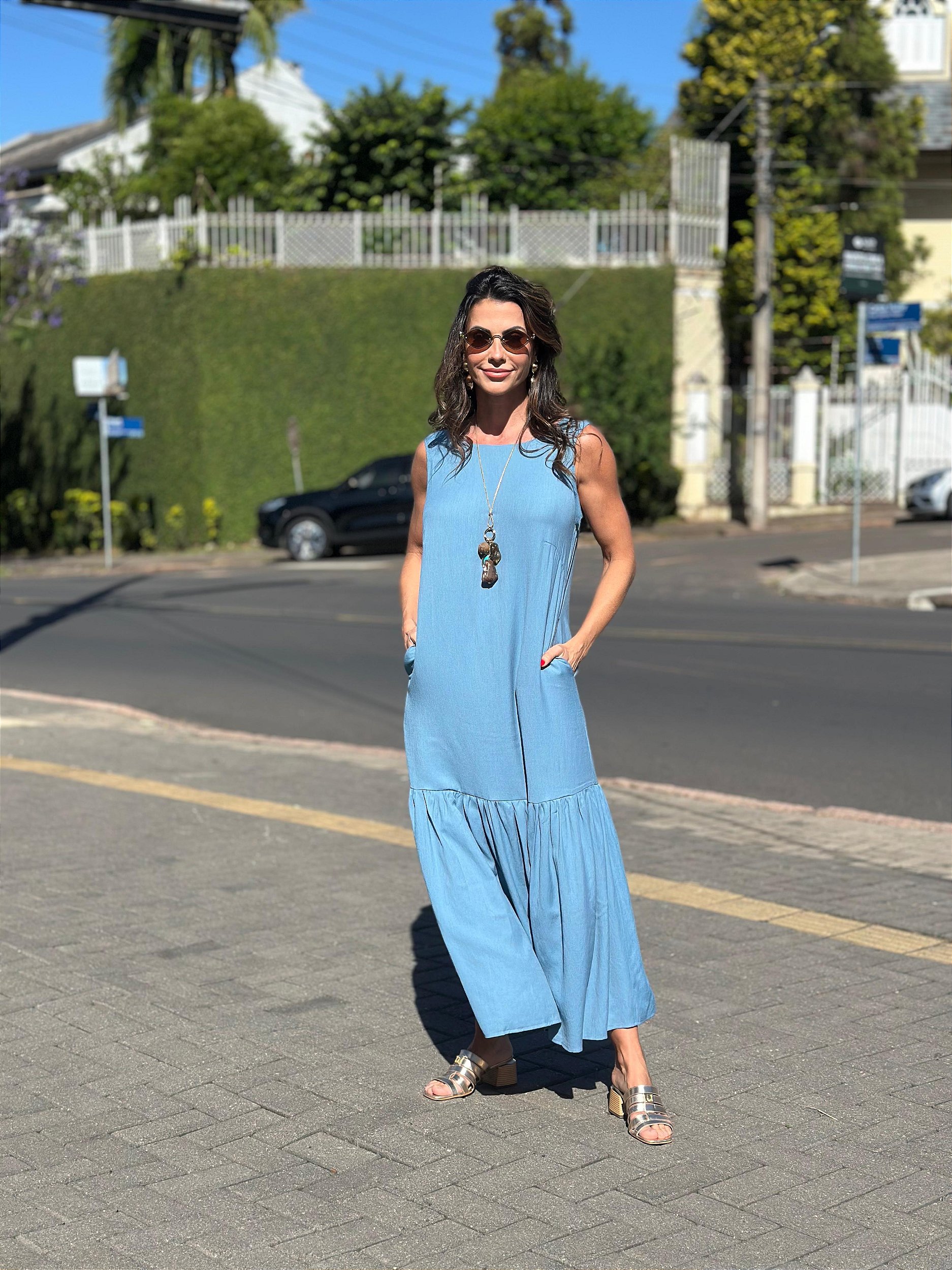 O Vestido Íris no azul chega com aquele ar refrescante e elegante que transforma qualquer produção. A cor é delicada, sofisticada e perfeita para iluminar o look com suavidade.