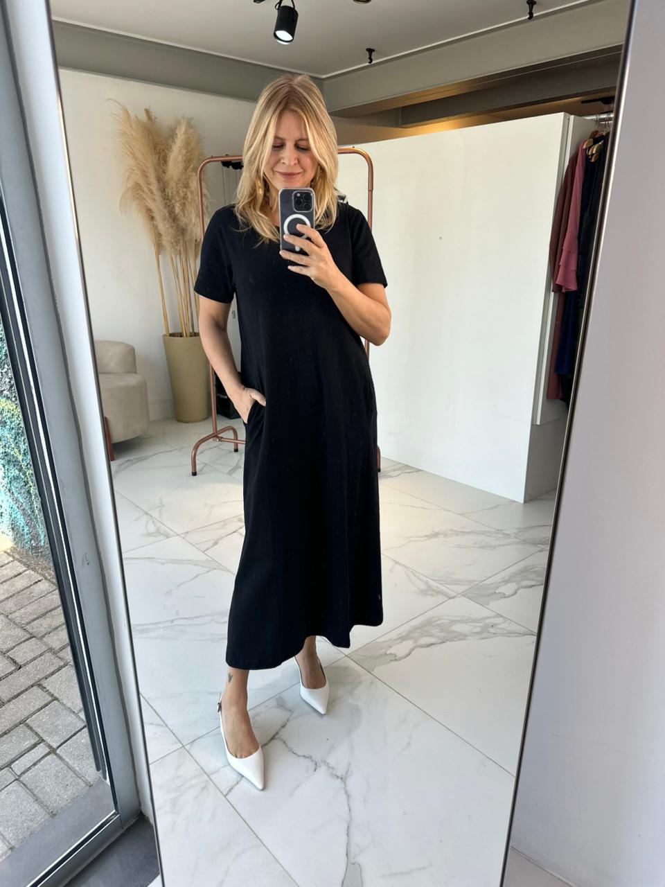 Peça versátil, confortável e elegante. O vestido Jaque é longo em malha é perfeito para quem busca praticidade no dia a dia sem abrir mão do estilo. Possui modelagem ampla e caimento fluido, garantindo leveza e liberdade de movimento.As mangas curtas e o decote redondo trazem um toque casual, enquanto os bolsos laterais funcionais adicionam charme e praticidade ao visual.Ideal para combinar com tênis, rasteiras ou sandálias, criando produções descomplicadas e modernas para todas as ocasiões.