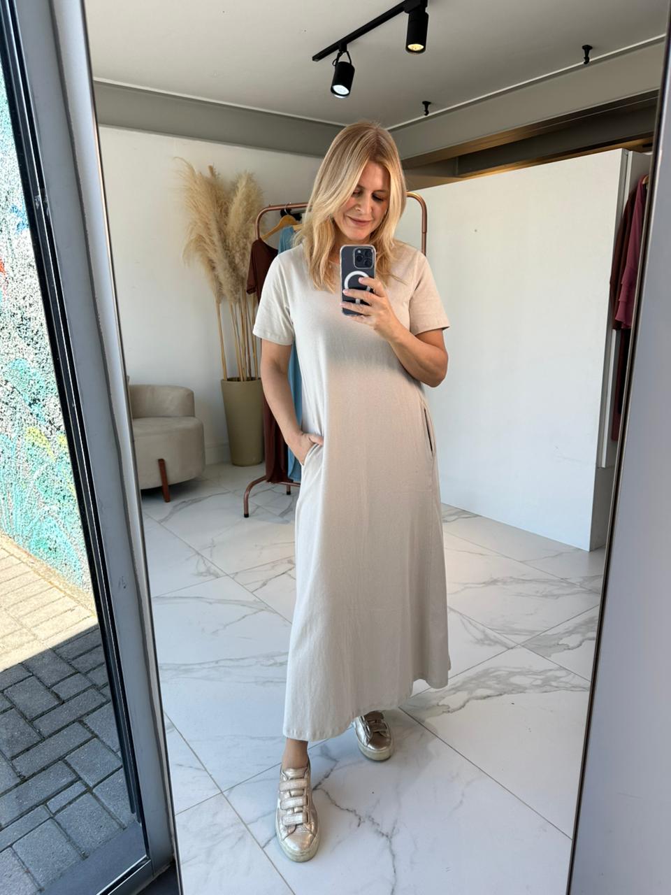 Peça versátil, confortável e elegante. O vestido Jaque é longo em malha é perfeito para quem busca praticidade no dia a dia sem abrir mão do estilo. Possui modelagem ampla e caimento fluido, garantindo leveza e liberdade de movimento.As mangas curtas e o decote redondo trazem um toque casual, enquanto os bolsos laterais funcionais adicionam charme e praticidade ao visual.Ideal para combinar com tênis, rasteiras ou sandálias, criando produções descomplicadas e modernas para todas as ocasiões.