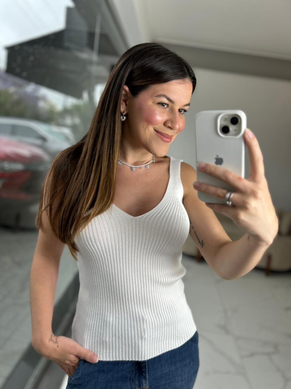 A peça possui modelagem ajustada ao corpo, proporcionando conforto e valorizando a silhueta com elegância. O tricot de textura canelada garante elasticidade e excelente caimento, ideal para compor looks versáteis — do casual ao sofisticado.