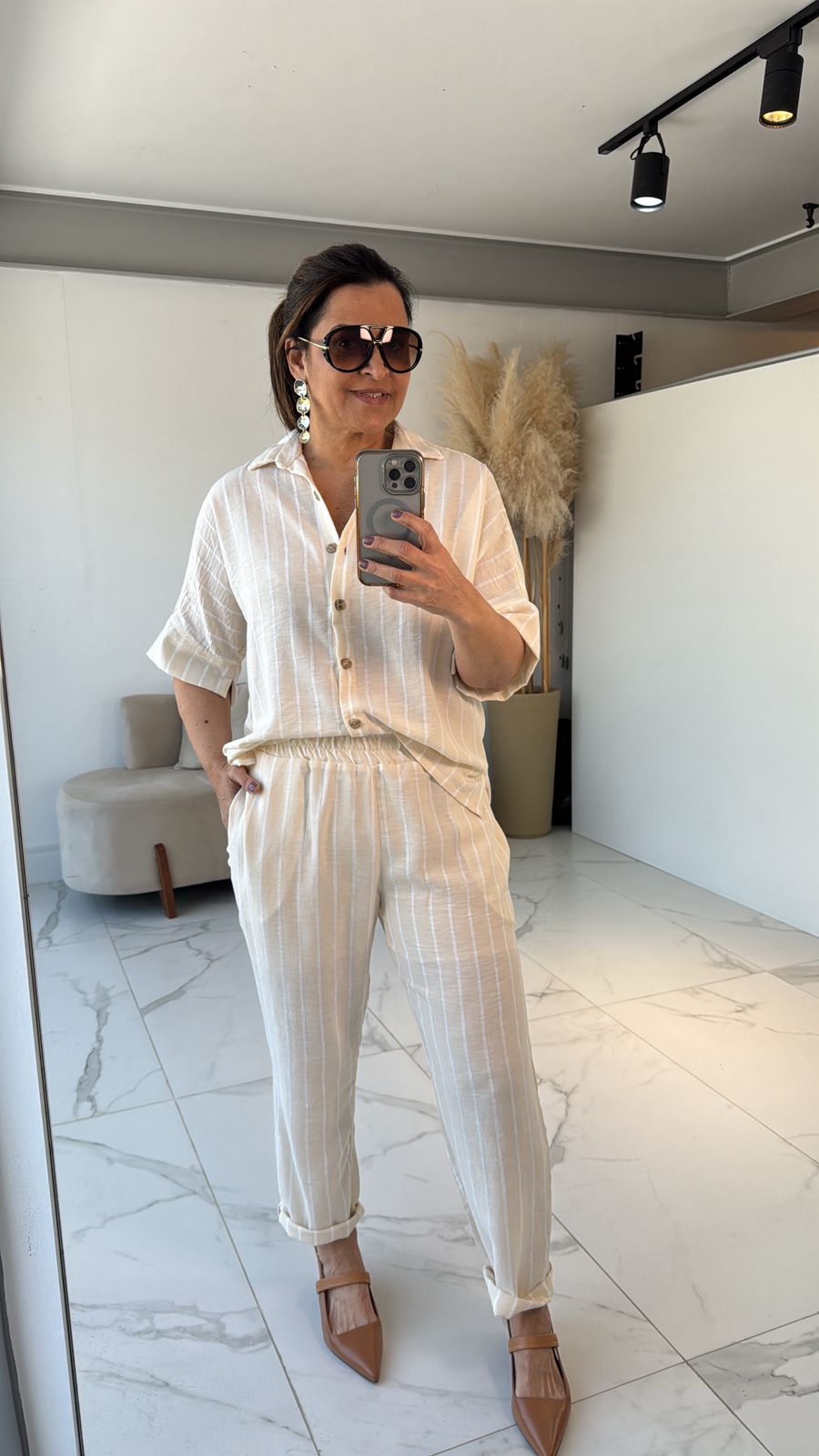 O conjunto é ideal para quem busca elegância descomplicada: use as peças juntas para um look harmônico ou separadas para compor novas produções.