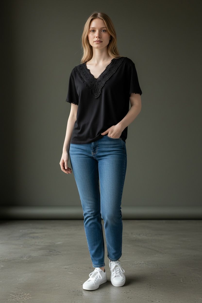 Decote V com detalhe em guipir
