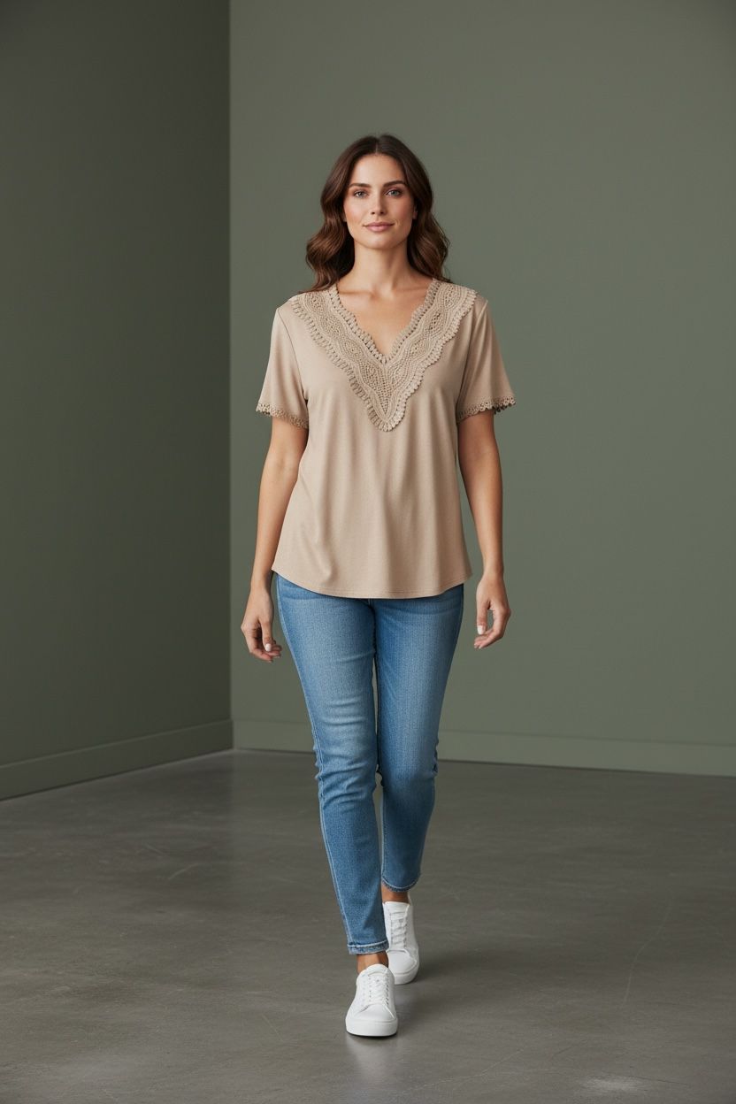 Elegante e feminina, a Blusa Decote V Guipir é perfeita para valorizar produções com um toque sofisticado. Confeccionada em malha leve e confortável, possui modelagem reta que garante ótimo caimento e liberdade de movimentos. O destaque fica por conta do decote em V com aplicação de guipir, que acrescenta delicadeza e riqueza de detalhes à peça, além de valorizar o colo de forma sutil.