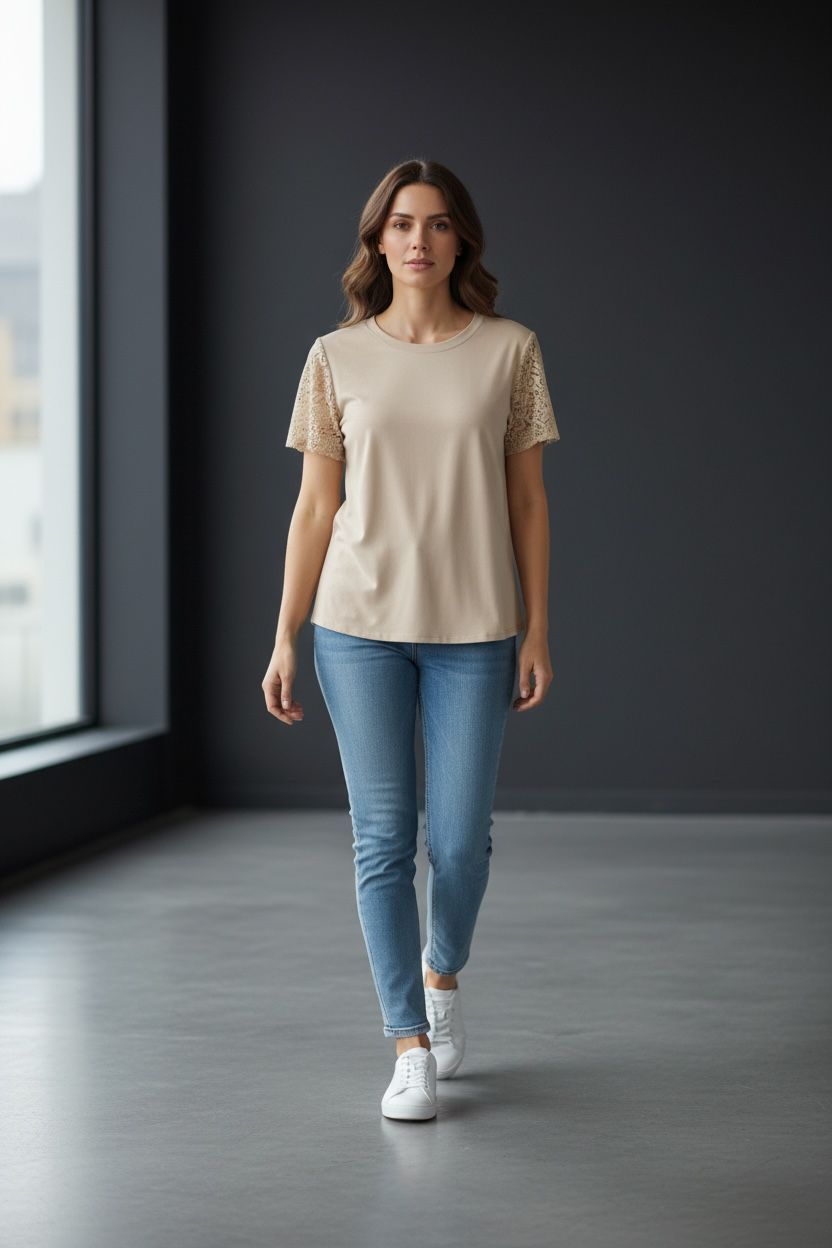 Delicada e atemporal, a Blusa Manga Renda é a escolha perfeita para quem busca conforto com um toque de feminilidade. Confeccionada em malha macia, possui modelagem reta que veste com leveza e caimento natural ao corpo. O destaque fica por conta das mangas curtas em renda, que trazem sofisticação e charme à peça, elevando produções do dia a dia.