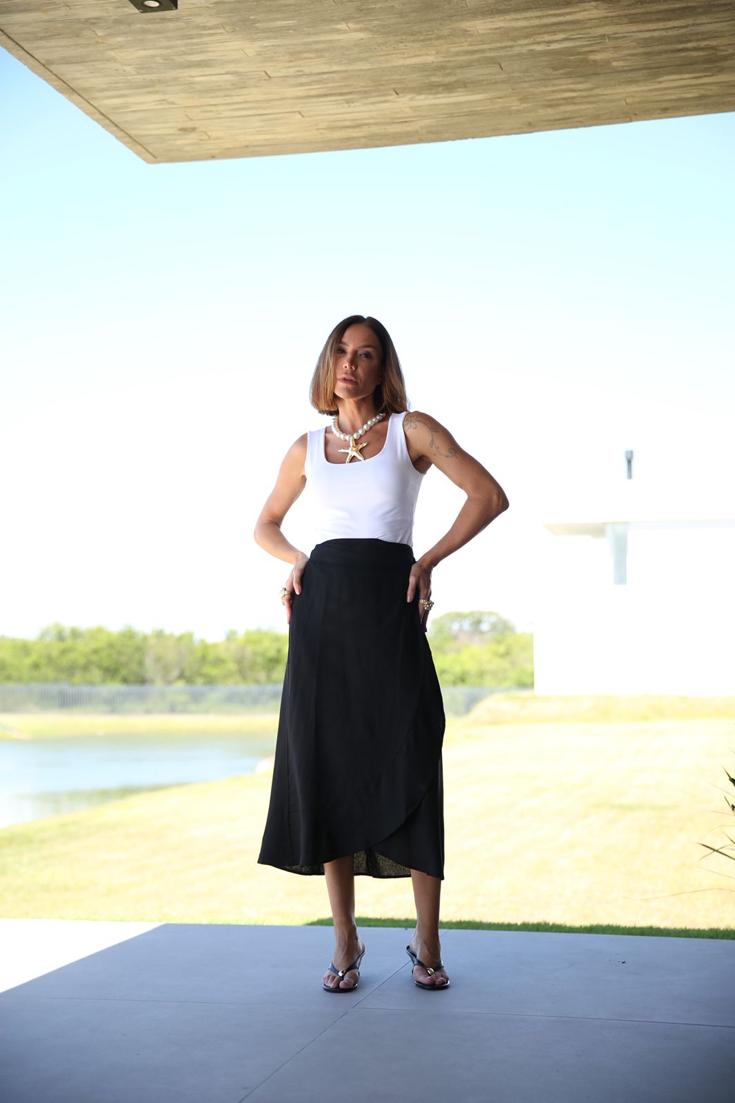 Uma peça elegante, atemporal e feminina, indispensável no closet de quem valoriza estilo, frescor e movimento em cada detalhe.