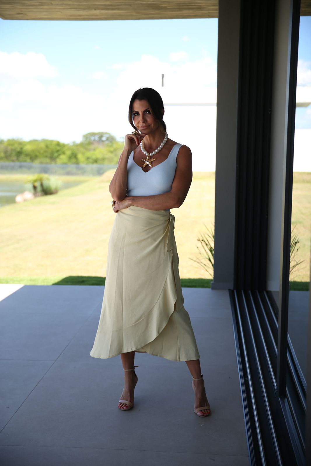Uma peça elegante, atemporal e feminina, indispensável no closet de quem valoriza estilo, frescor e movimento em cada detalhe.
