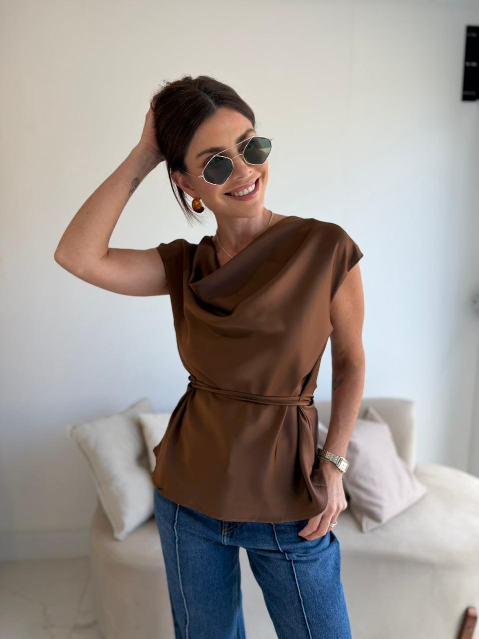 BLUSA CETIM ANA MARROM