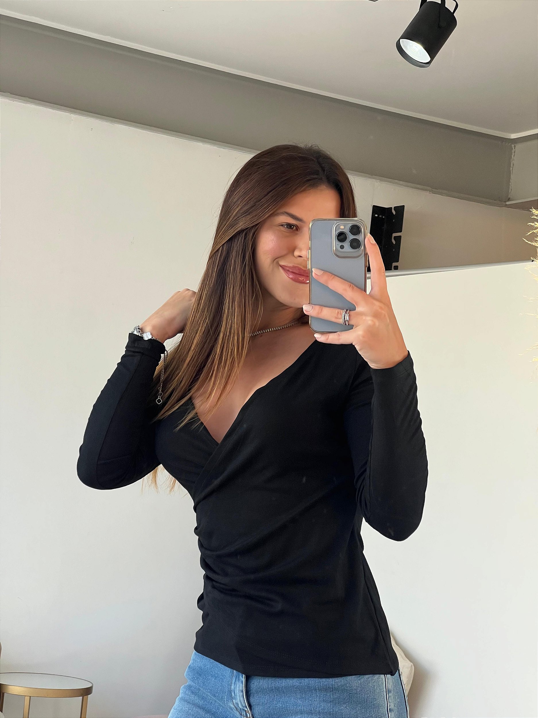 Com mangas longas e tecido macio, ela é ideal para compor produções versáteis que transitam facilmente entre o casual e o sofisticado.