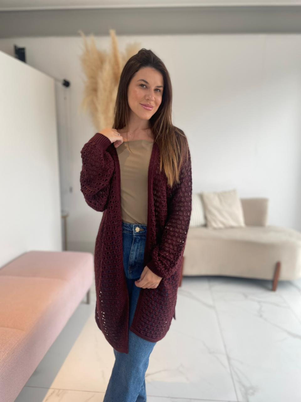 O Cardigan Consuelo é a peça perfeita para trazer conforto e estilo aos dias mais frescos. Com trama em textura e caimento alongado, ele adiciona charme e sofisticação ao look de forma descomplicada.