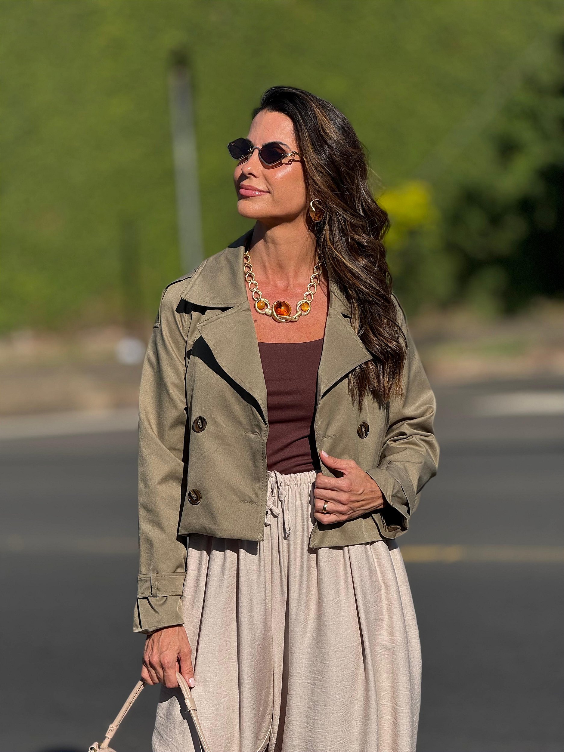 Moderna e versátil, a jaqueta parka cropped é a peça ideal para compor produções elegantes nos dias de temperatura amena. Confeccionada em 100% poliéster, possui estrutura leve e confortável, perfeita para sobreposição. O modelo traz inspiração utilitária com lapelas marcantes, botões frontais e comprimento mais curto, que valoriza a silhueta e adiciona sofisticação ao look.