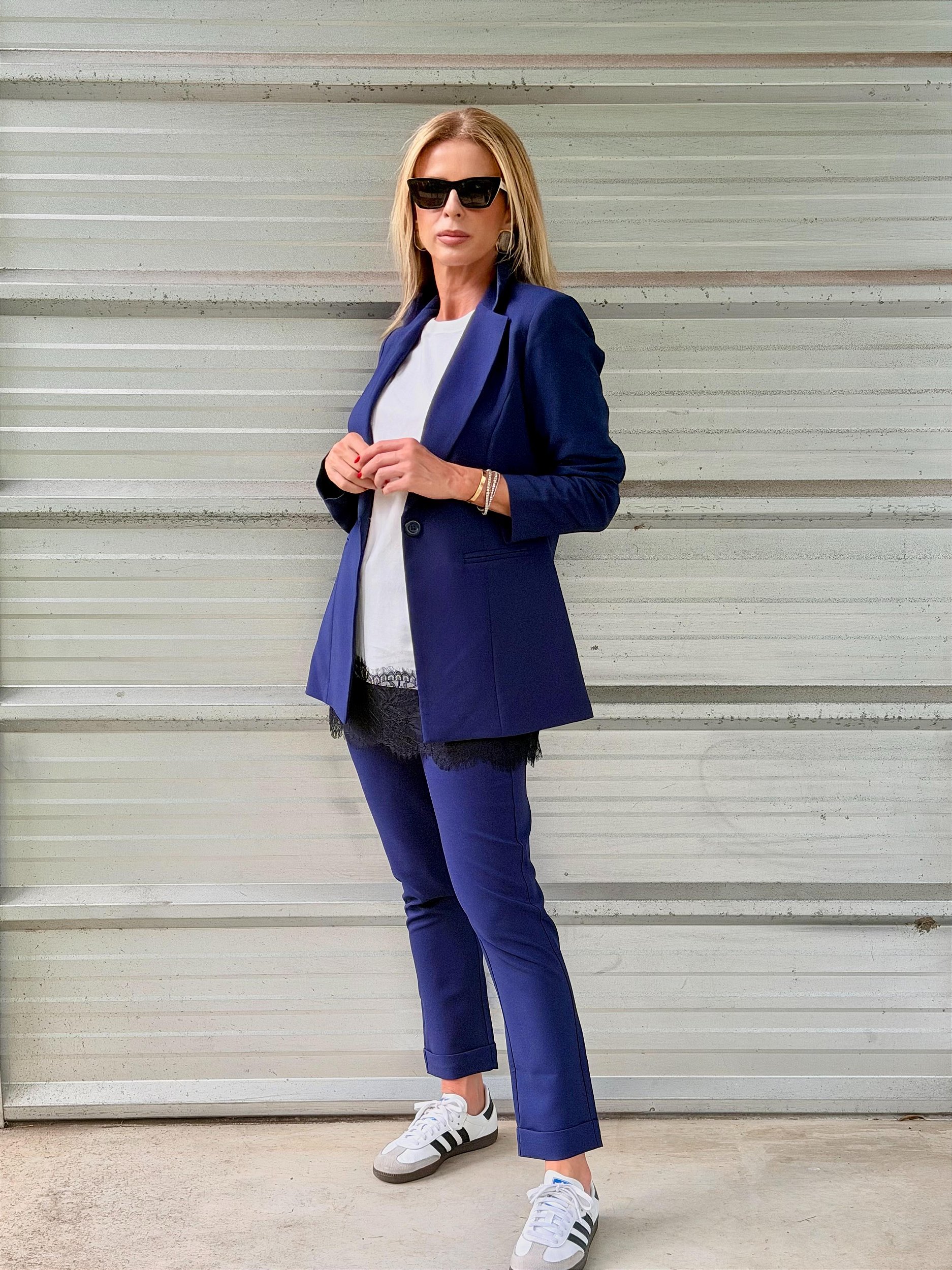 Calça em alfaiataria, com elastano, bolso faca, modelagem slim e barra italiana.