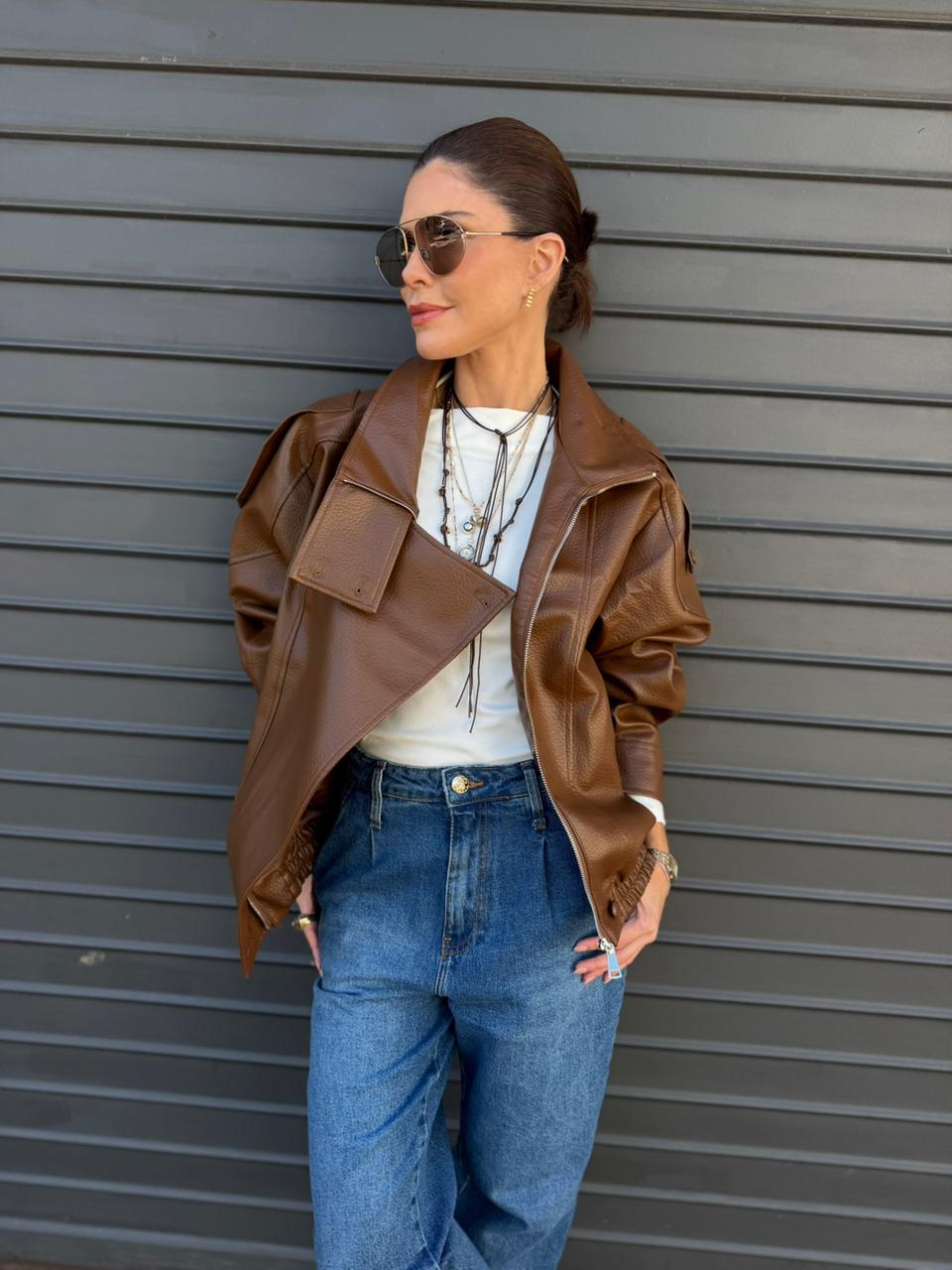 Versátil, combina facilmente com jeans para um visual casual chic ou com peças de alfaiataria para produções mais refinadas. Uma peça atemporal, ideal para quem busca estilo e atitude em qualquer ocasião. 🤎✨
